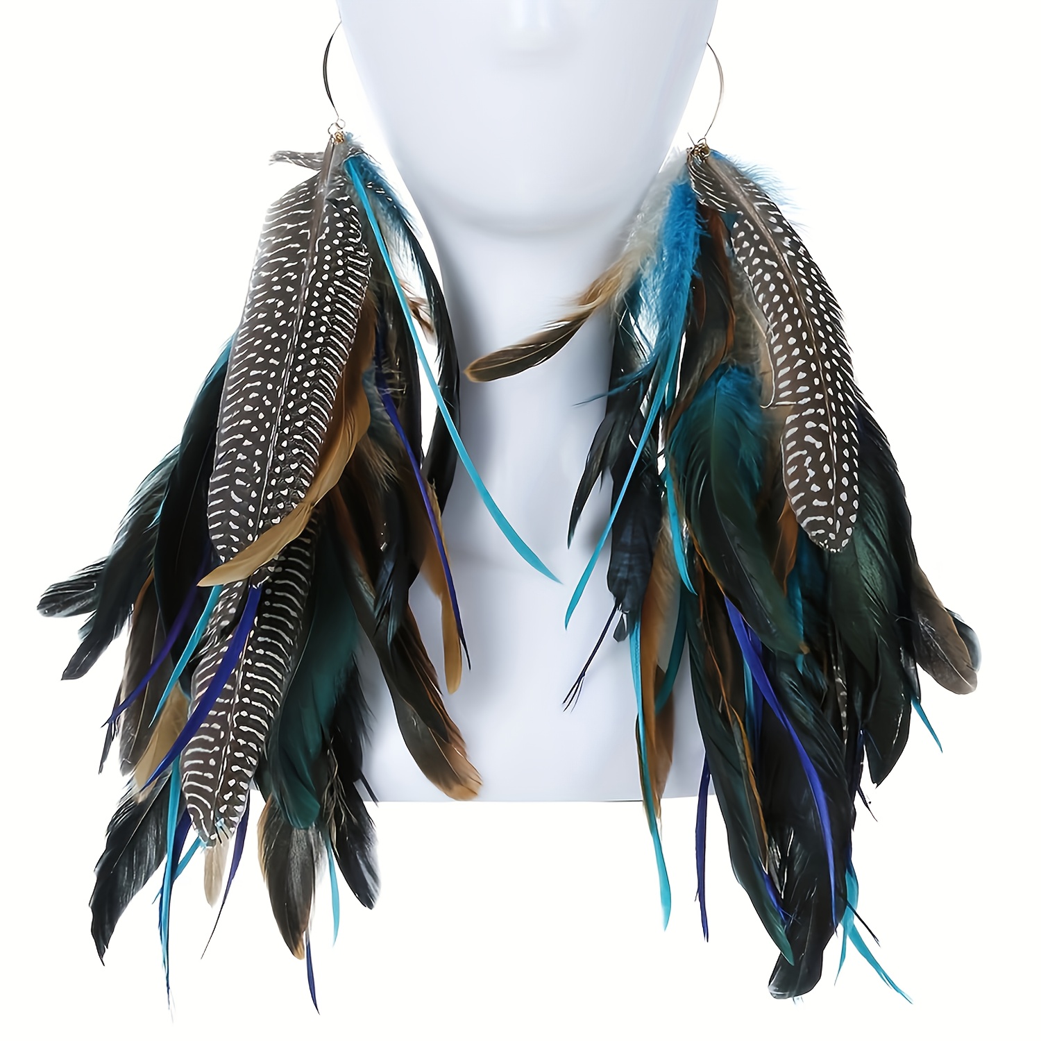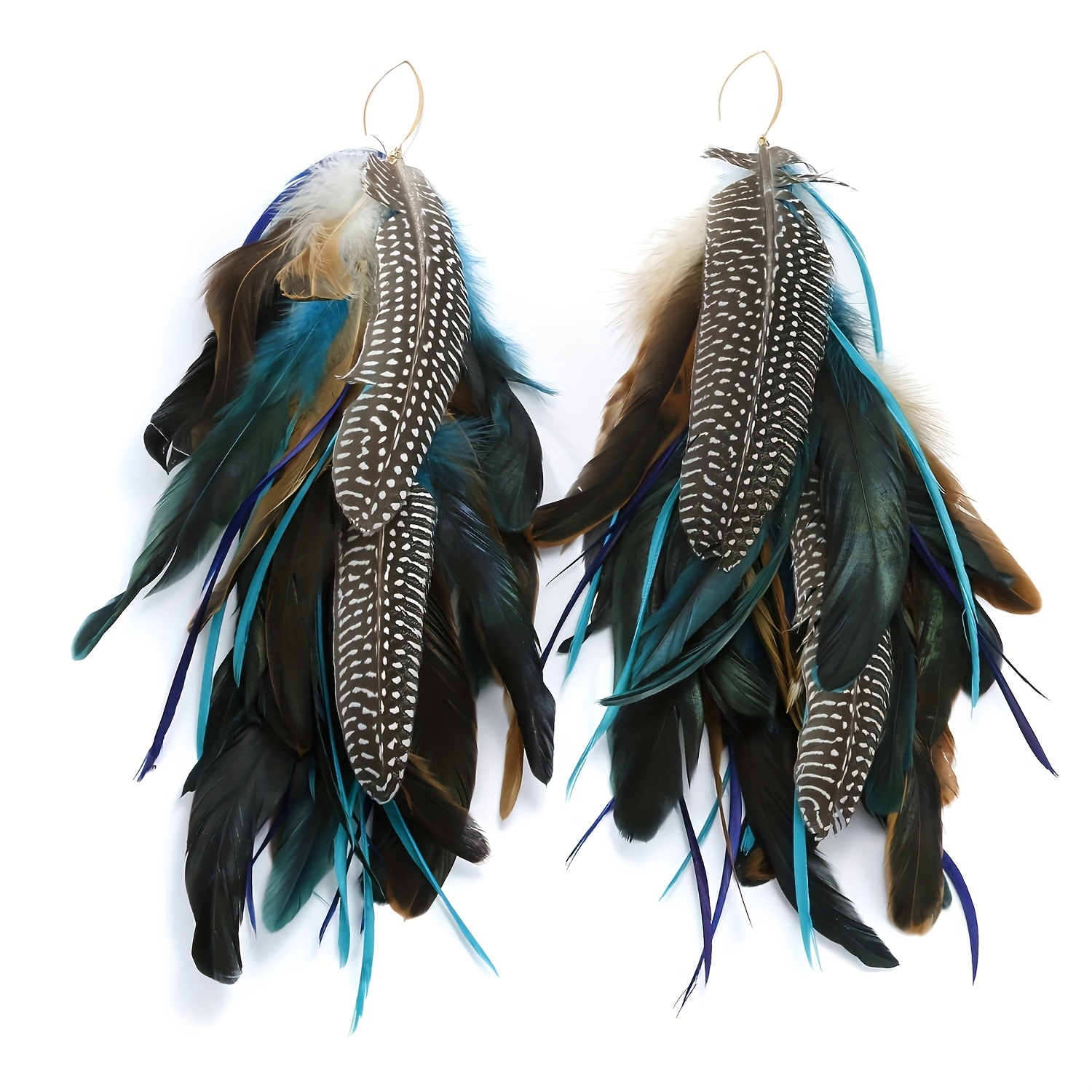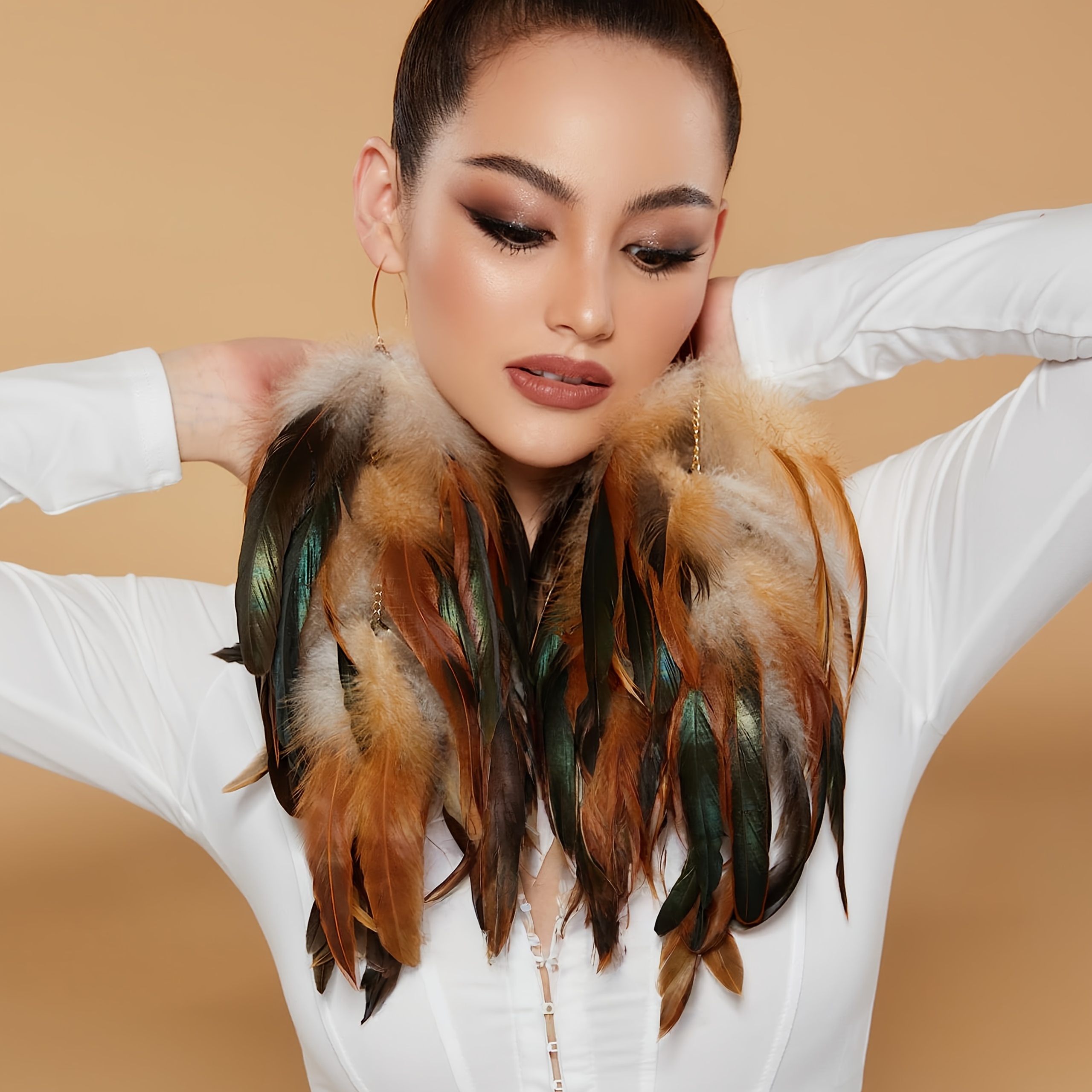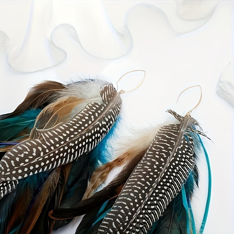 Give opulence everything she came for. “Refined Regality” is a chandelier-style feather earring set that blends tribal richness with editorial edge. With cascading plumes in earthy tones—brown, black, green, and beige—these earrings frame your face like a crown. Lightweight yet commanding, they’re made for the glam girl who leads with softness and slays with strength.