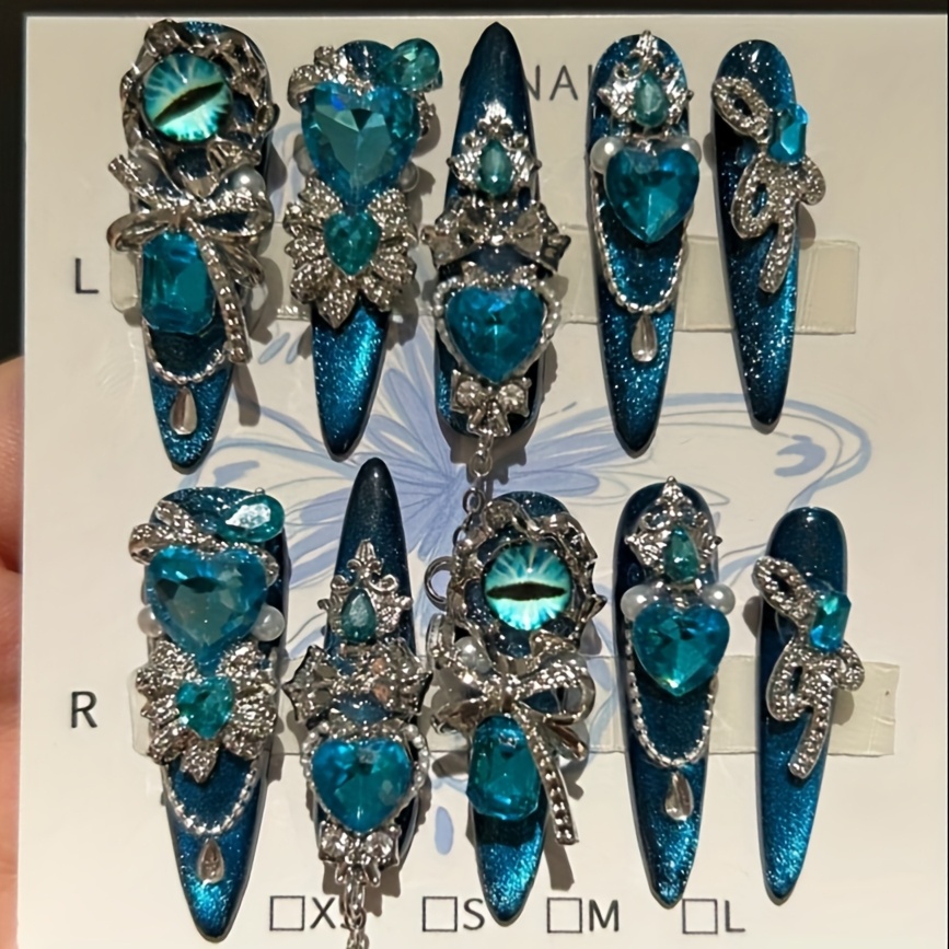 Bold. Brilliant. Dazzling style. Serve up spellbinding glam with this handcrafted ocean-blue stiletto set glittering in 3D jelly gems, linked rhinestone chains, and icy crystal accents. Perfect for holiday stunts, gifting to your bestie, or simply channeling your inner Queen of Ice. ✨ Lustrous. Luxurious. Limited. Add to cart while your competition melts.