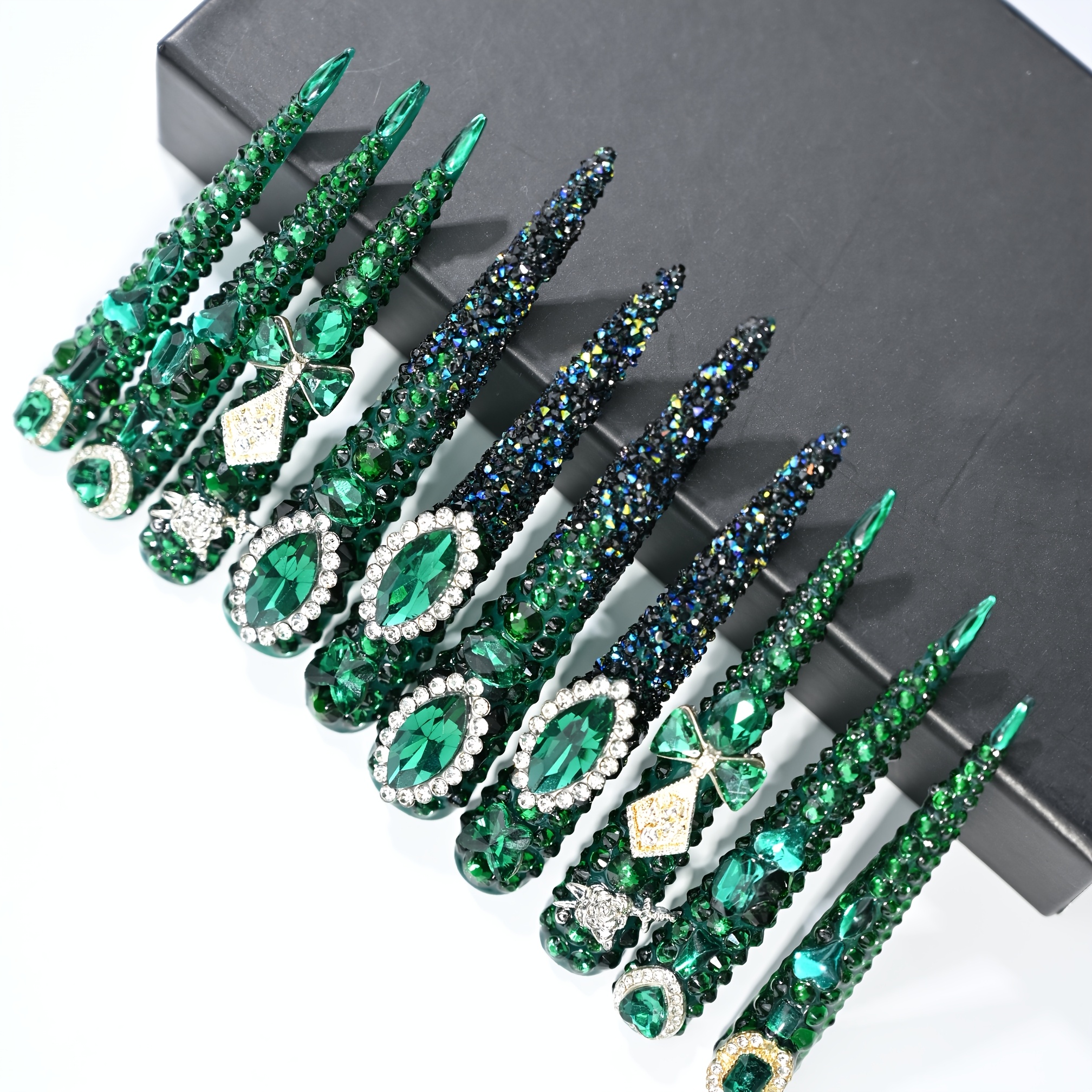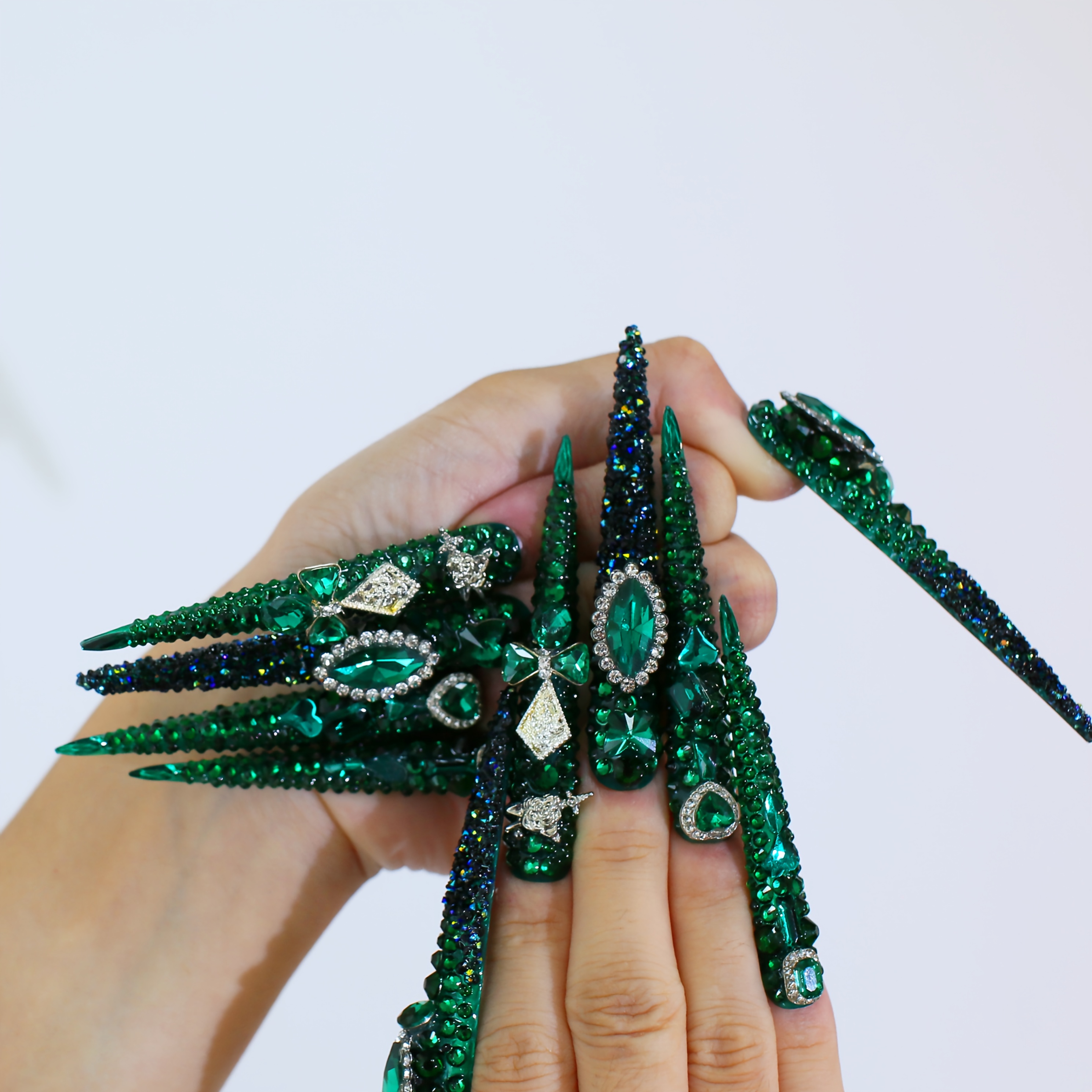 Emerald Flurry Set – Stiletto Acrylic Nails