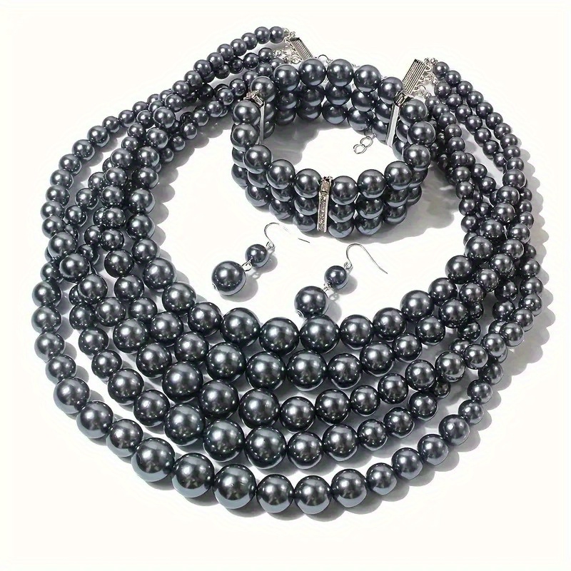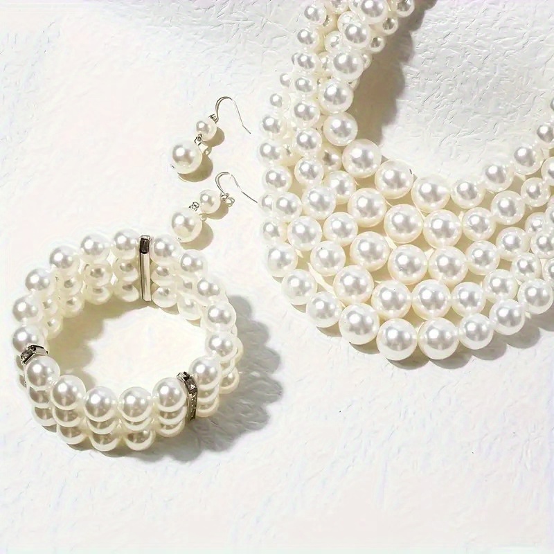 3-Piece Luxury Women's Faux Jewelry Set Elegant Necklace Bracelet and Earrings Perfect for Casual Attire Parties and Banquets