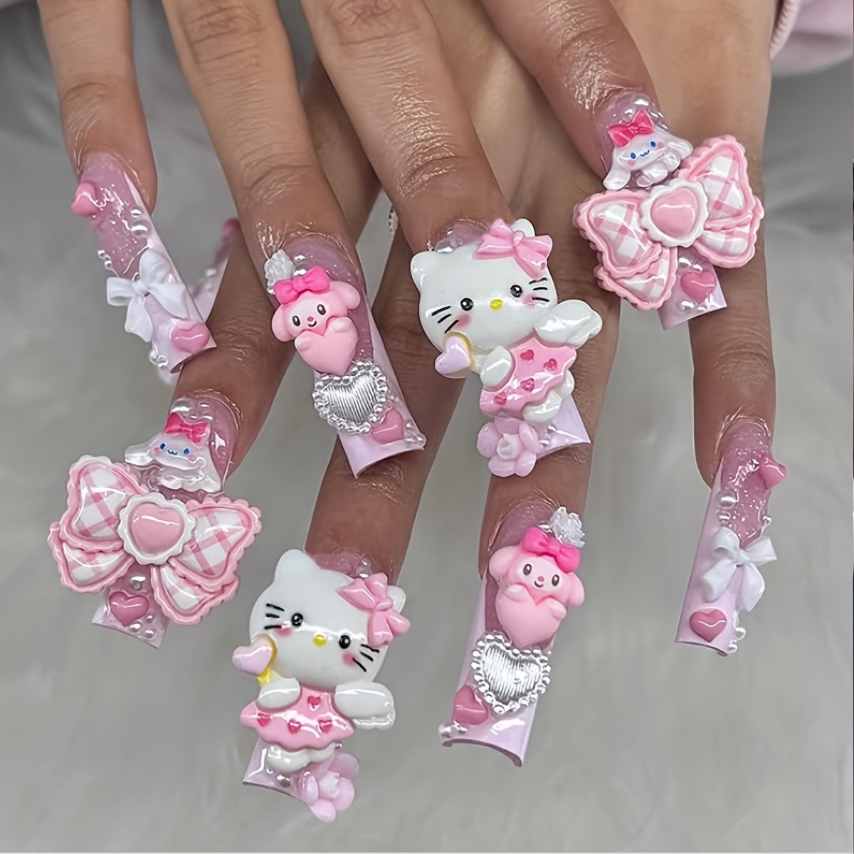 Kawaii Dream Set – Hello Kitty Coffin Acrylic Nails