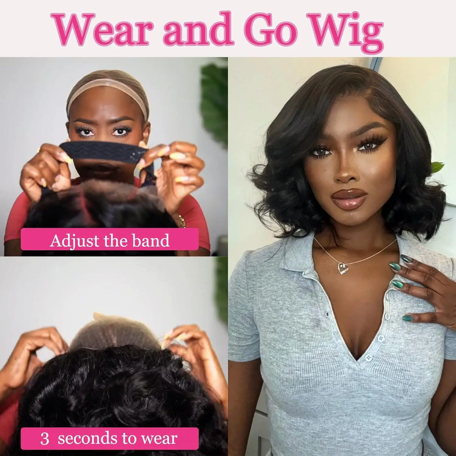 Style: Glueless 4x4 Body Wave Bob Human Hair Wig