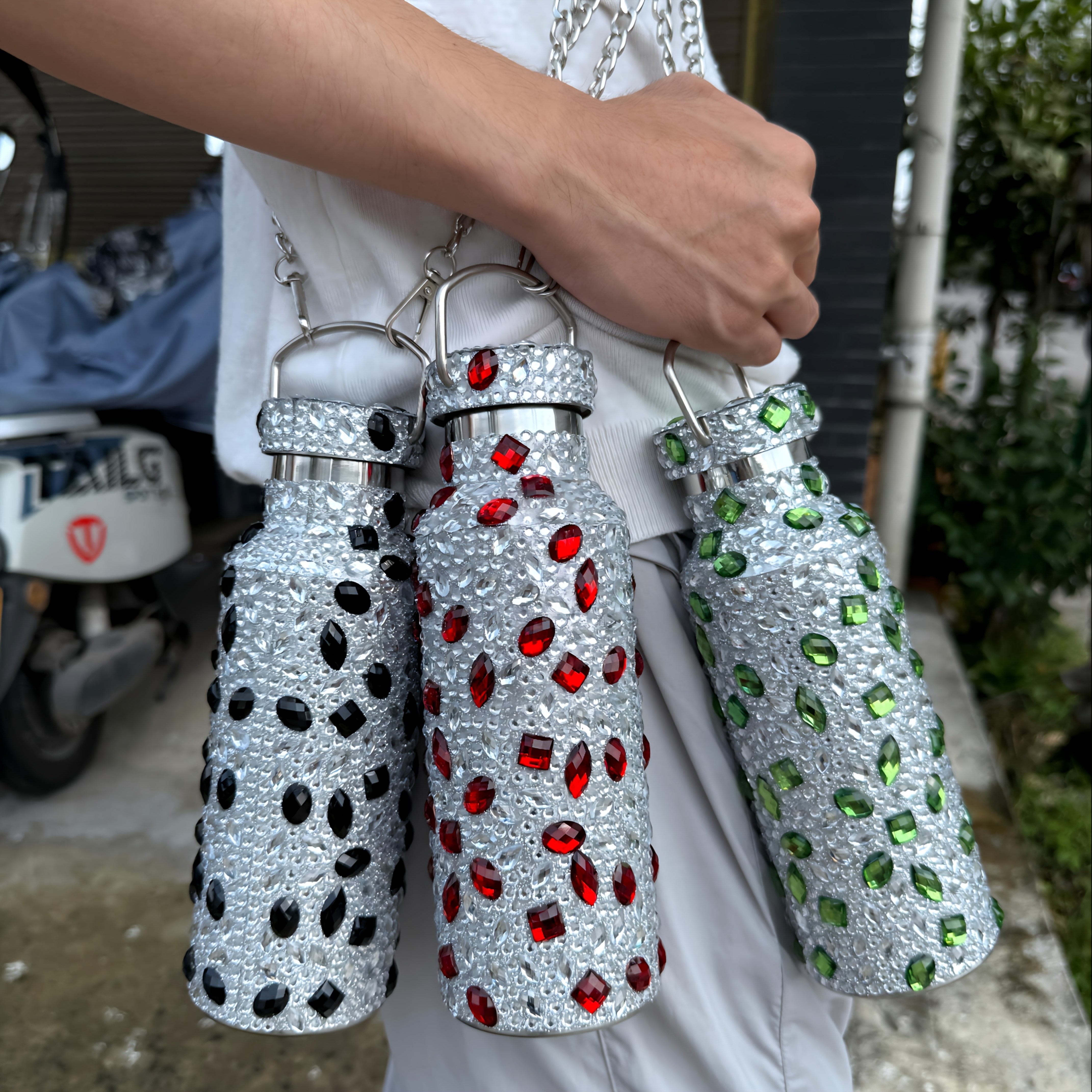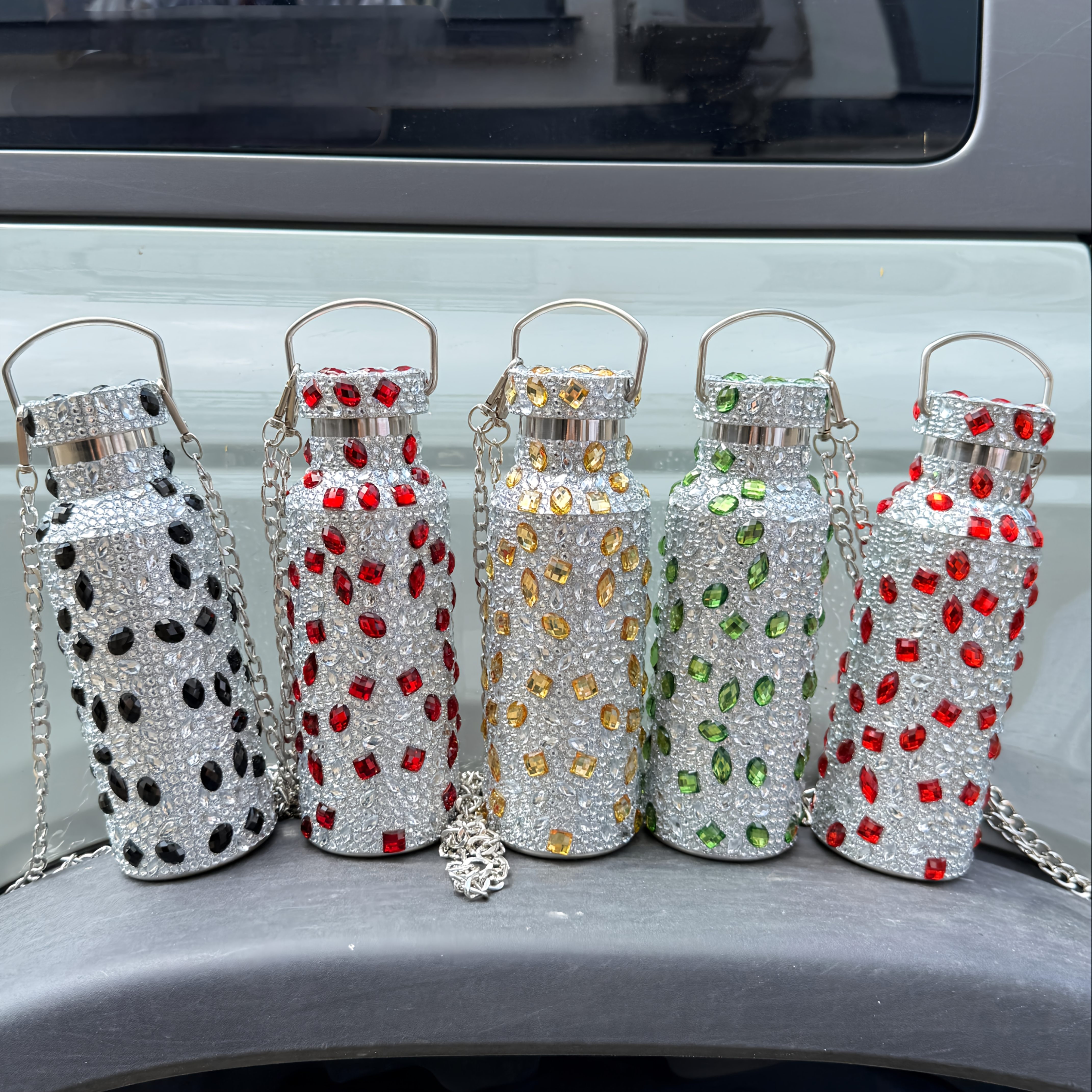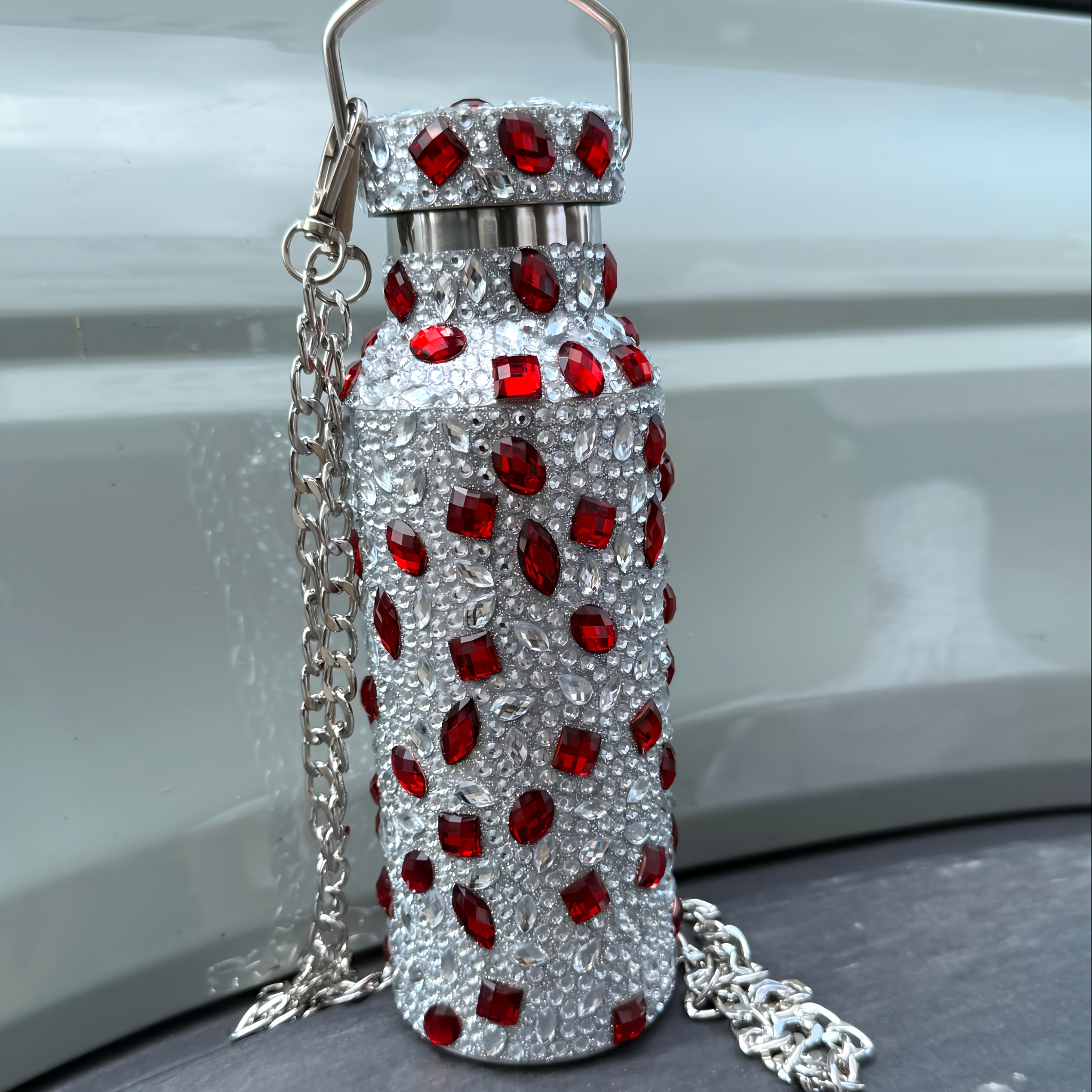 The Glamour Theory Bottle isn’t just for water—it’s for wowing. Drenched in rhinestones and kissed with red gems, this bottle transforms hydration into high fashion. Whether you’re headed to the gym, the glam suite, or the streets, this bottle says: I sparkle. I slay. I sip in style.