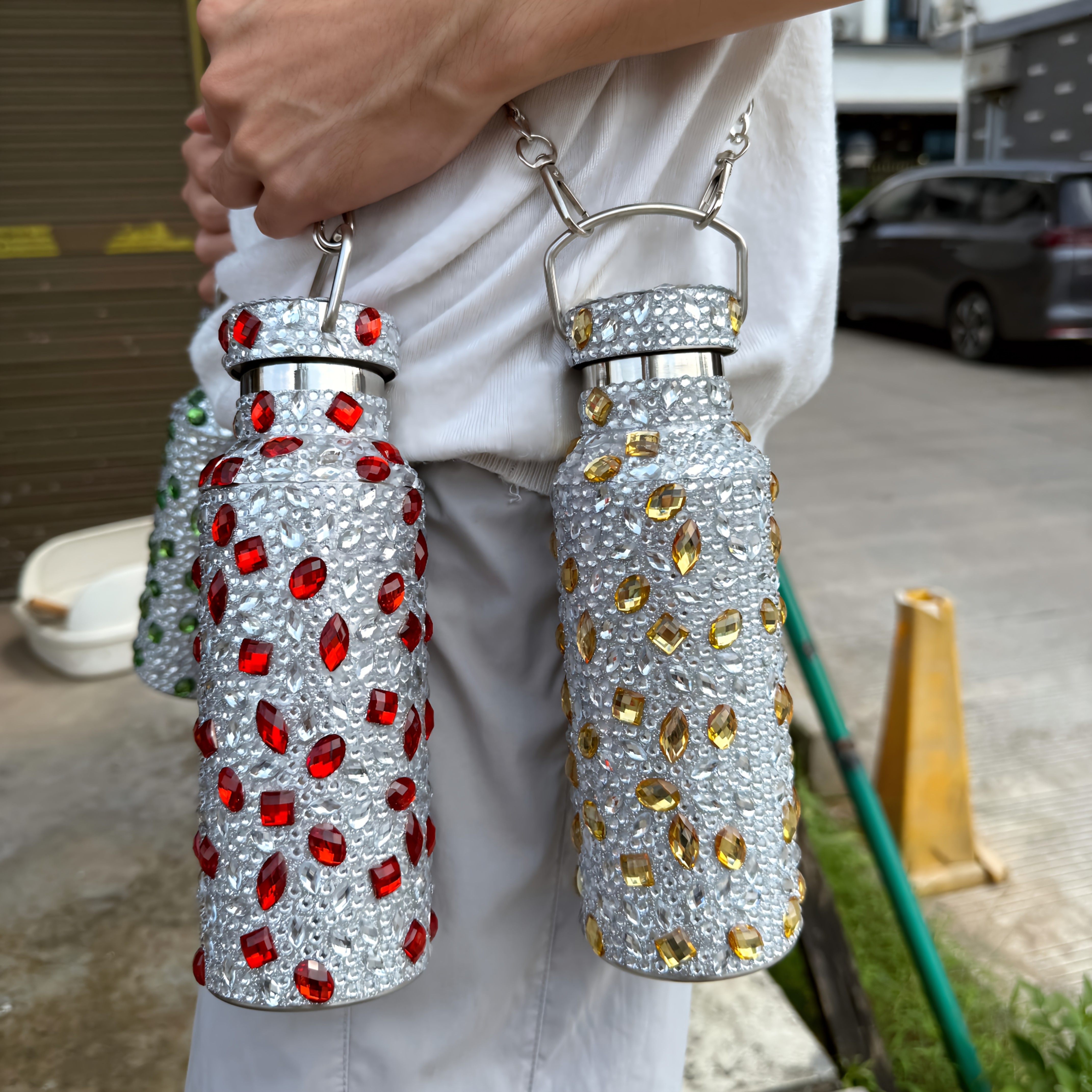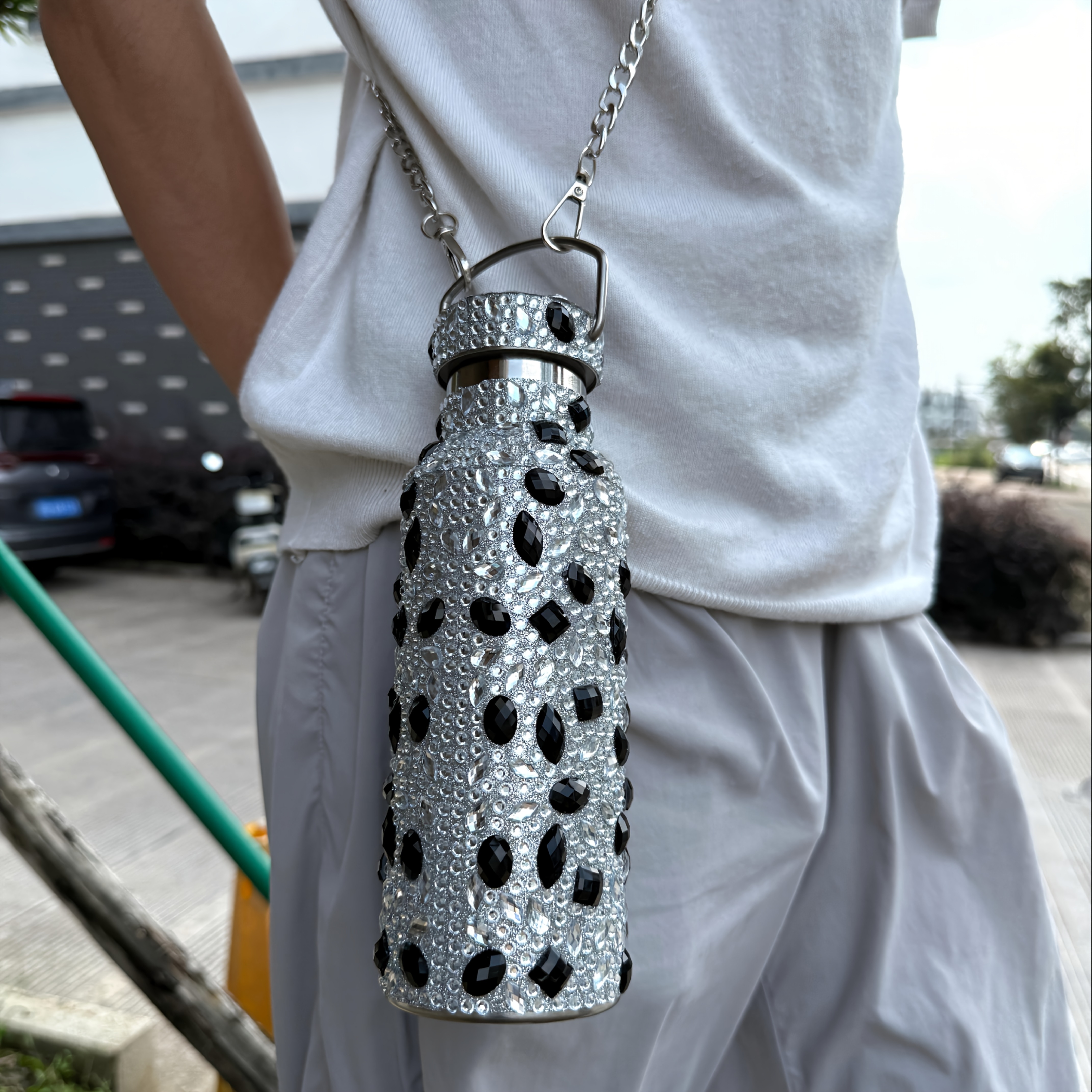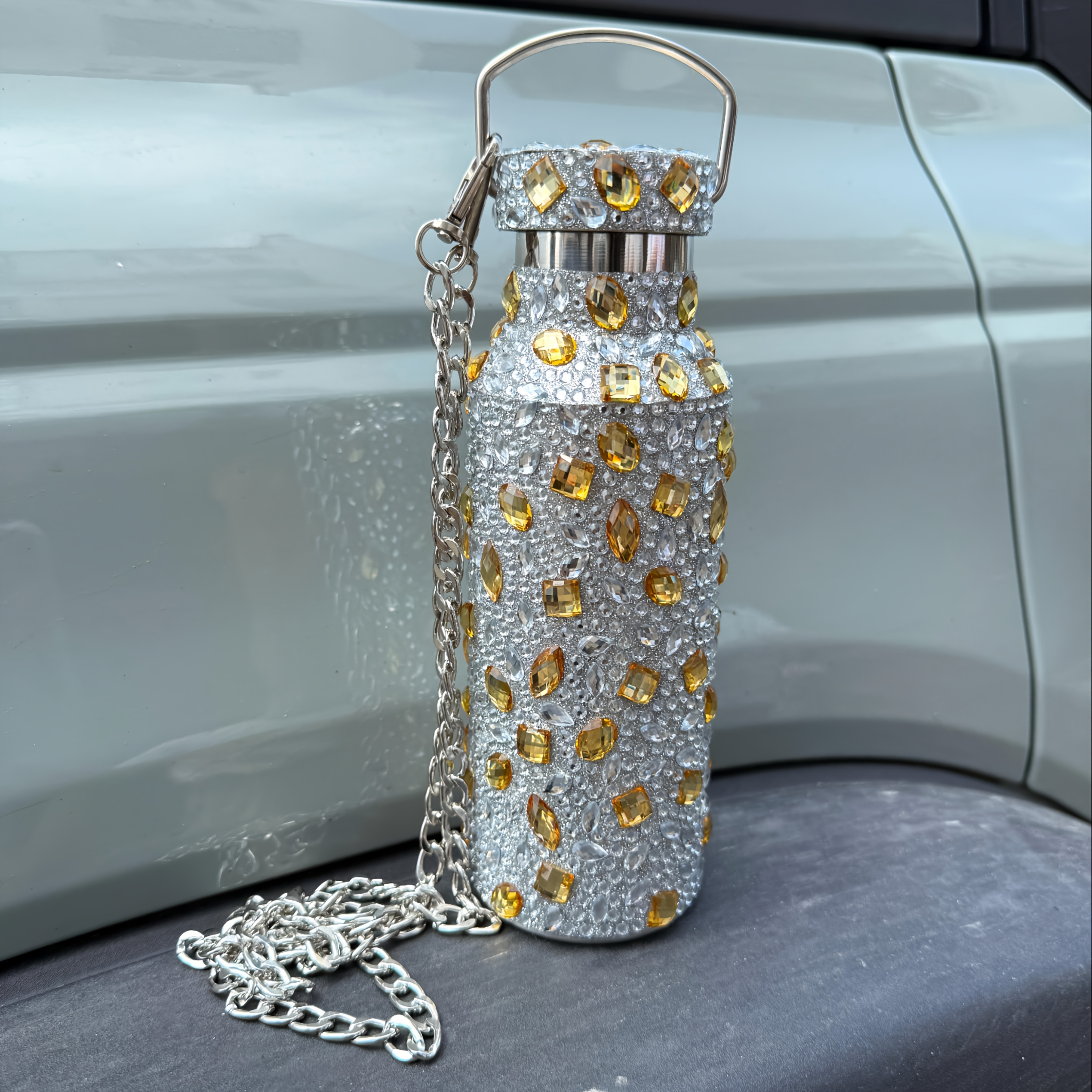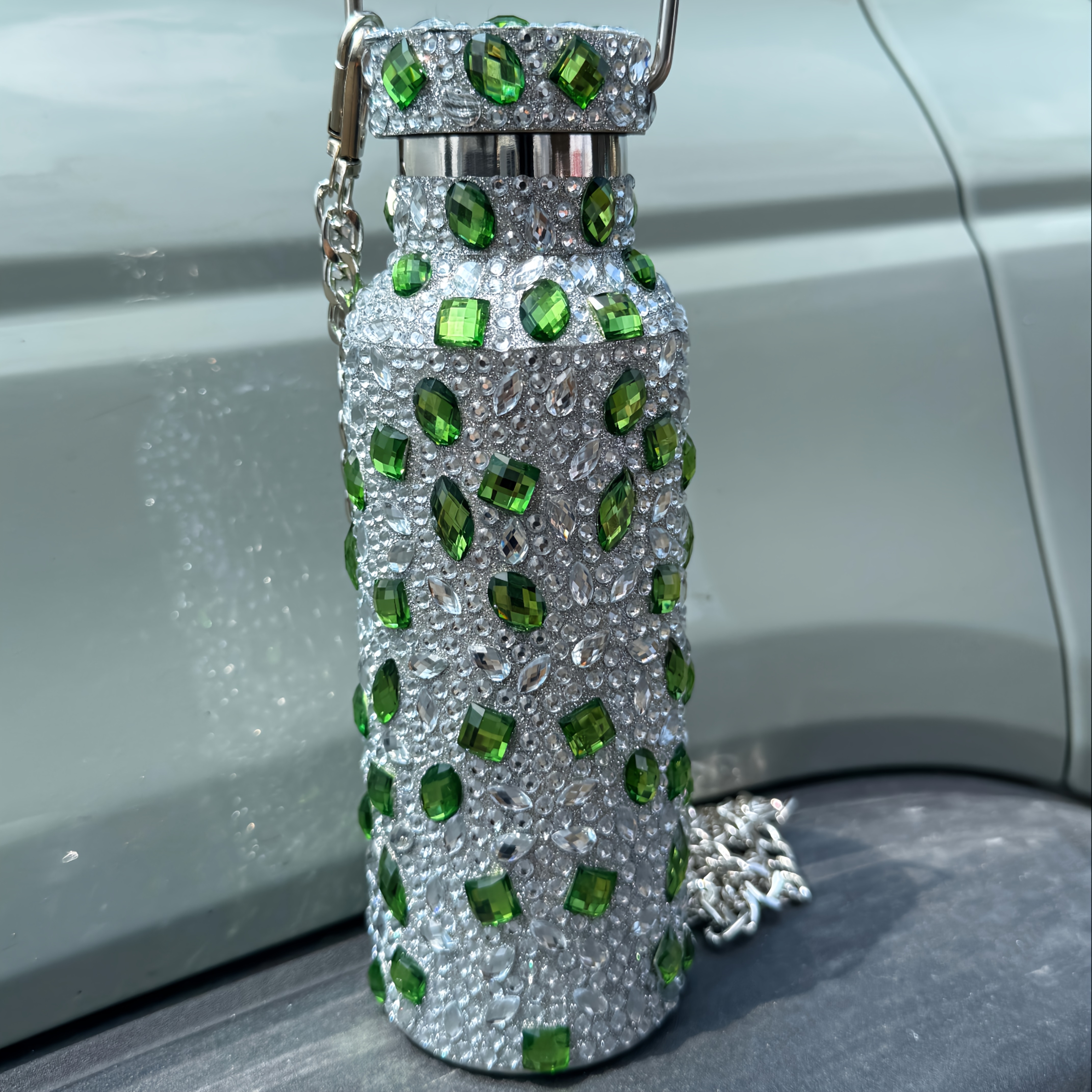 The Glamour Theory Bottle isn’t just for water—it’s for wowing. Drenched in rhinestones and kissed with red gems, this bottle transforms hydration into high fashion. Whether you’re headed to the gym, the glam suite, or the streets, this bottle says: I sparkle. I slay. I sip in style.