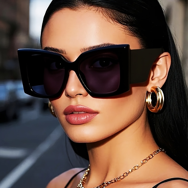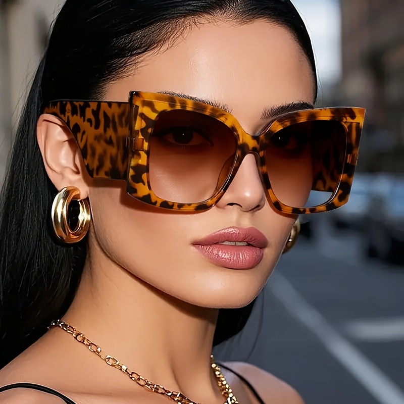 Urban Eclipse isn’t eyewear—it’s presence. These oversized square frames in bold tortoiseshell wrap your gaze in gradient drama, fading from deep mystery to golden clarity. Paired with gold hoops and a chain? You’re not just stepping out—you’re stepping up. Whether you’re catching light on the sidewalk or casting shade from the front seat, these glasses say: I’m the vibe. I’m the verdict.