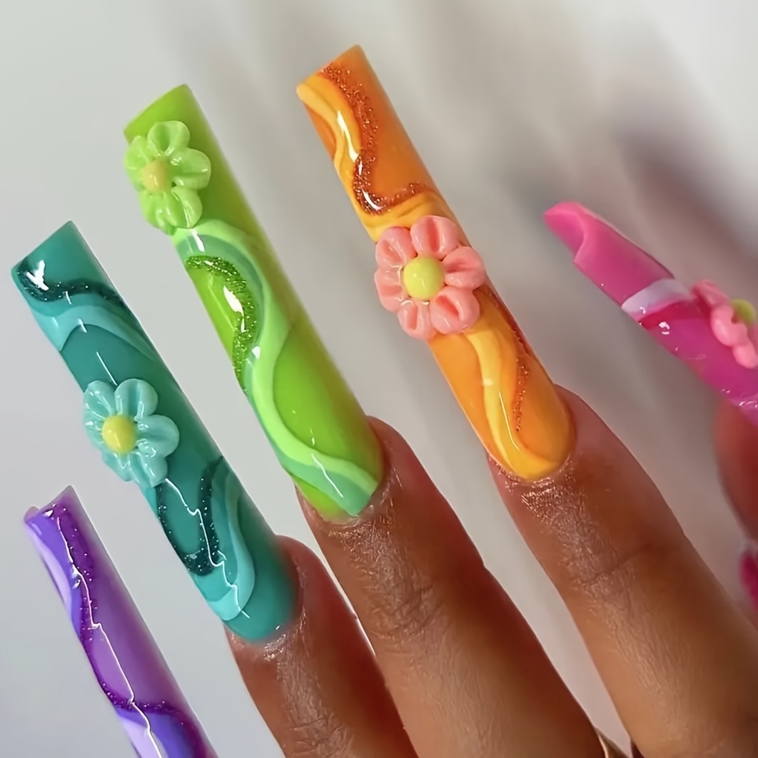 These nails are a mood board come to life: 🌈 Neon. 🌸 Floral. 💅 Fierce.