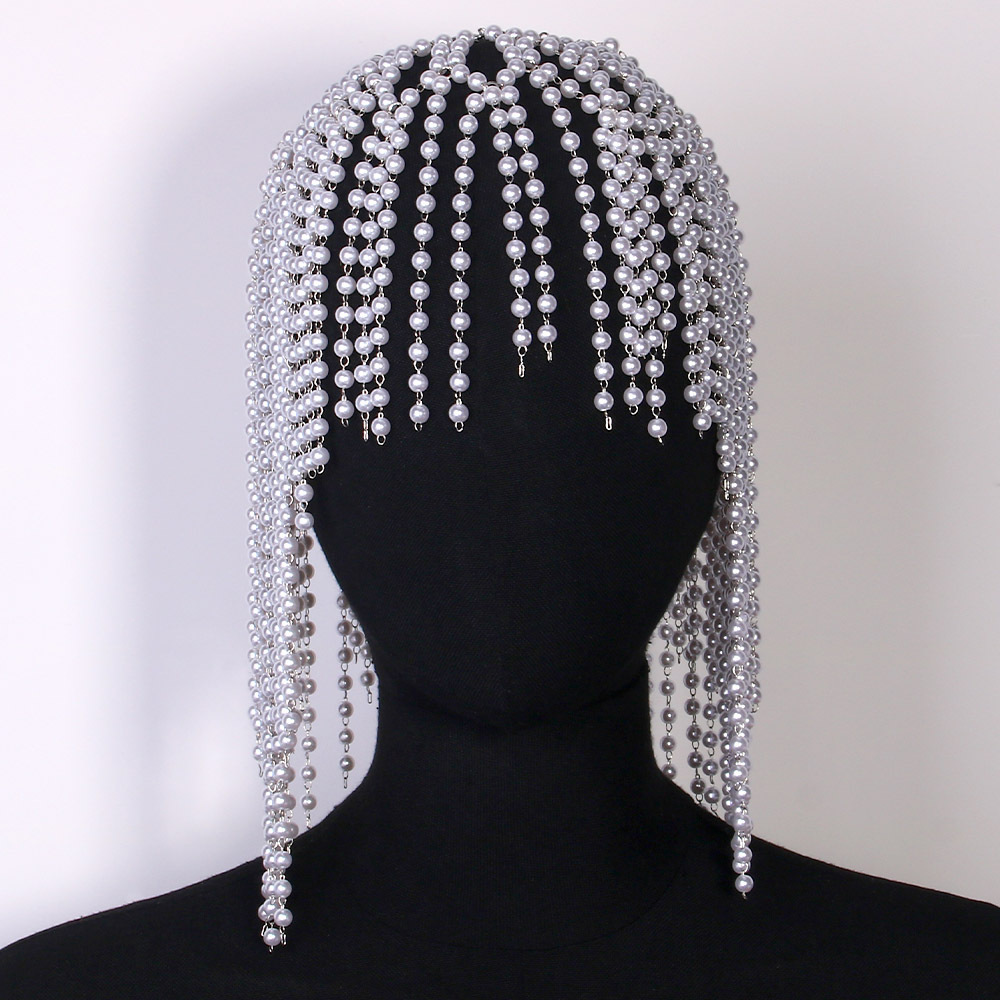 Beaded Waterfall – Statement Head Jewelry Silver strands. Spotlight shimmer. Main character energy. This handcrafted headpiece drapes like a jeweled curtain—hundreds of metallic beads cascading in perfect symmetry, framing your face with drama and light. Whether you're stepping into a shoot, a stage, or a scene that needs you, this piece delivers instant icon status.