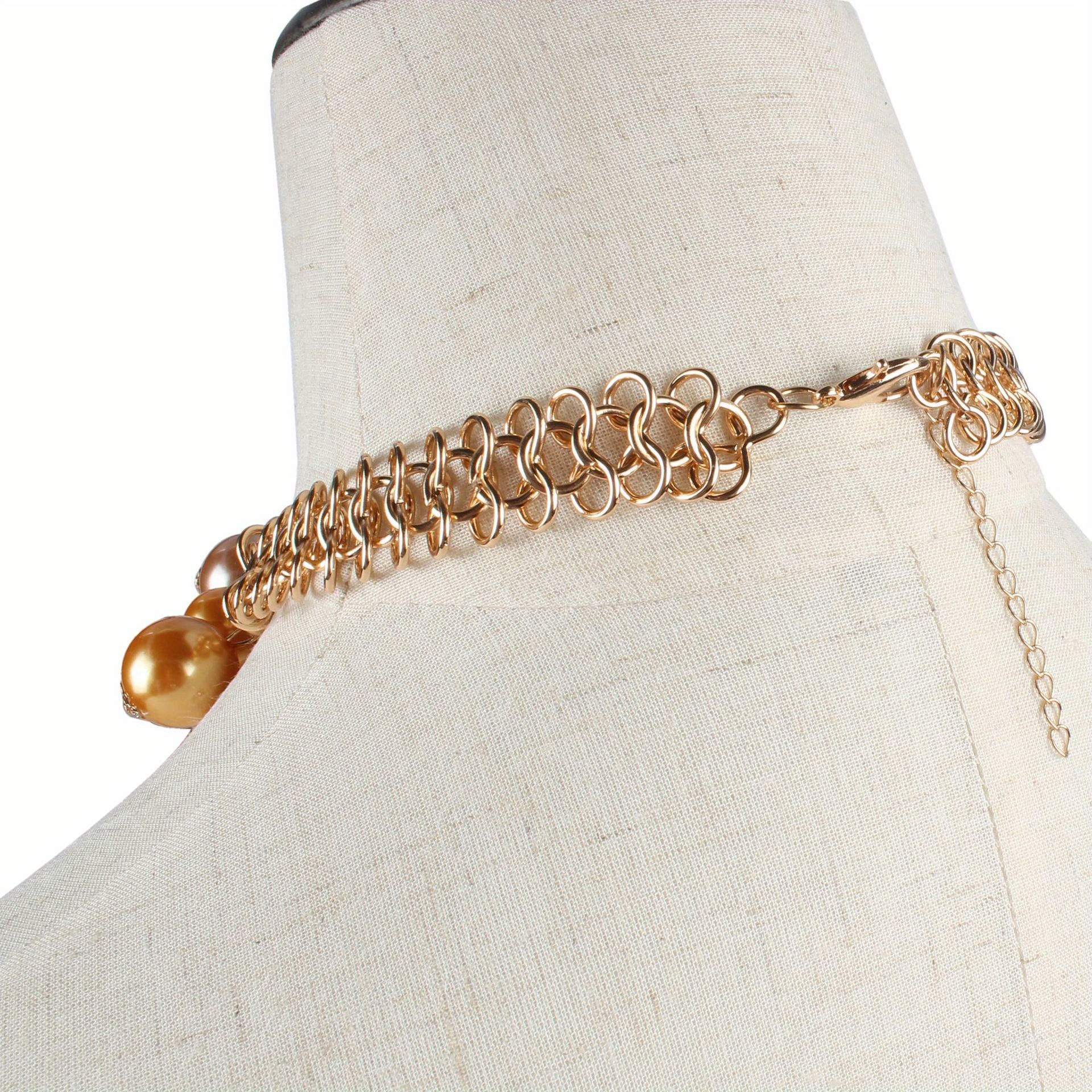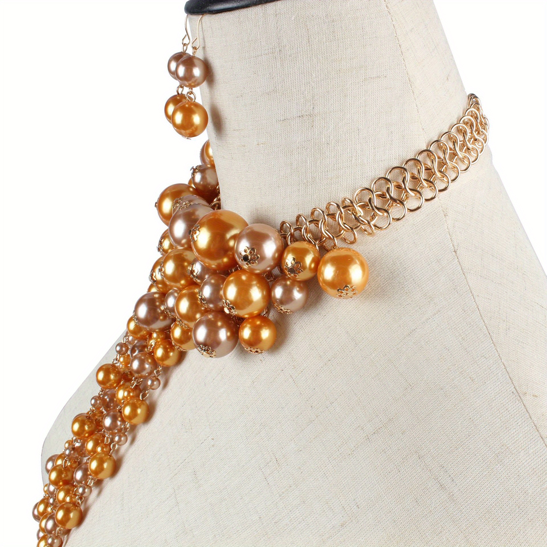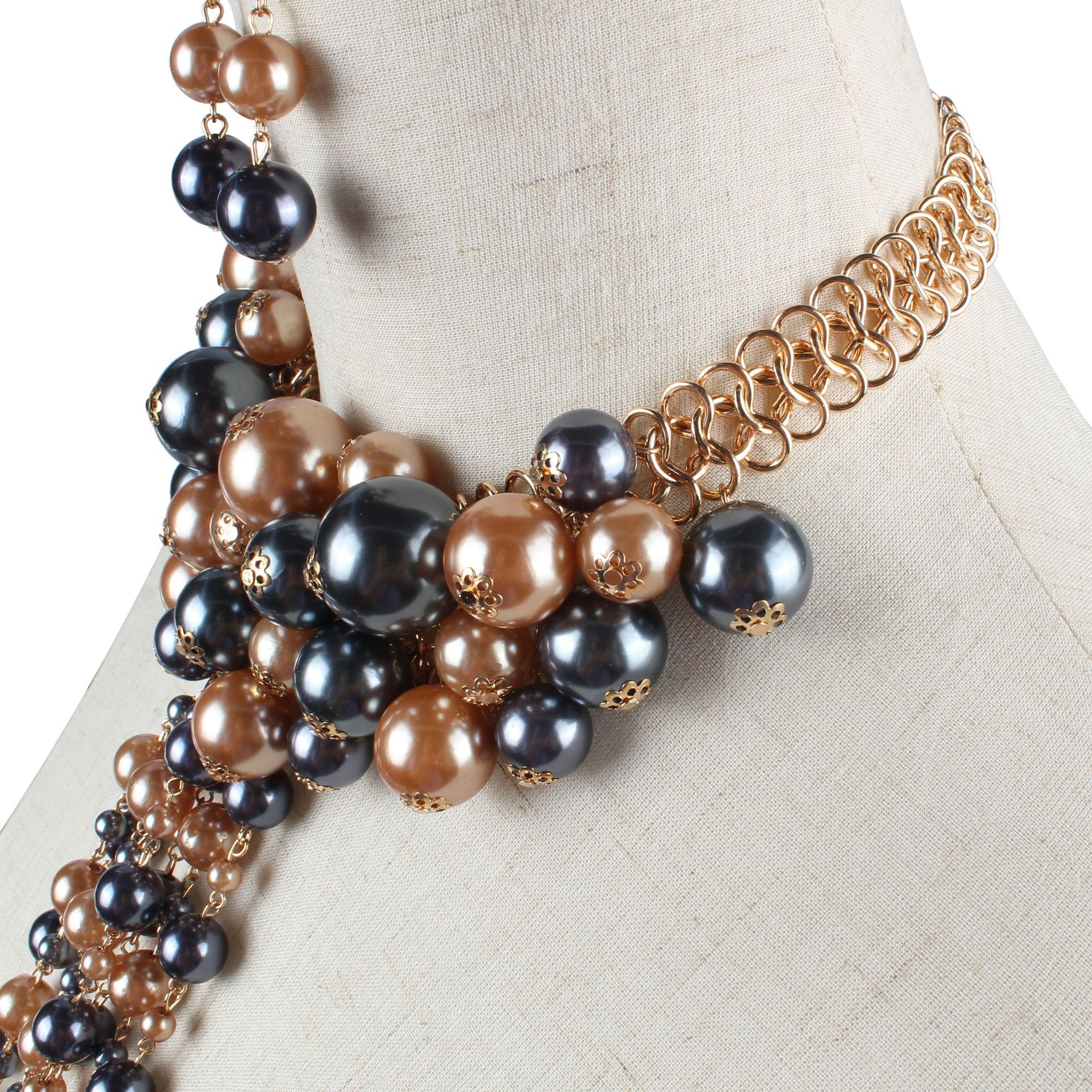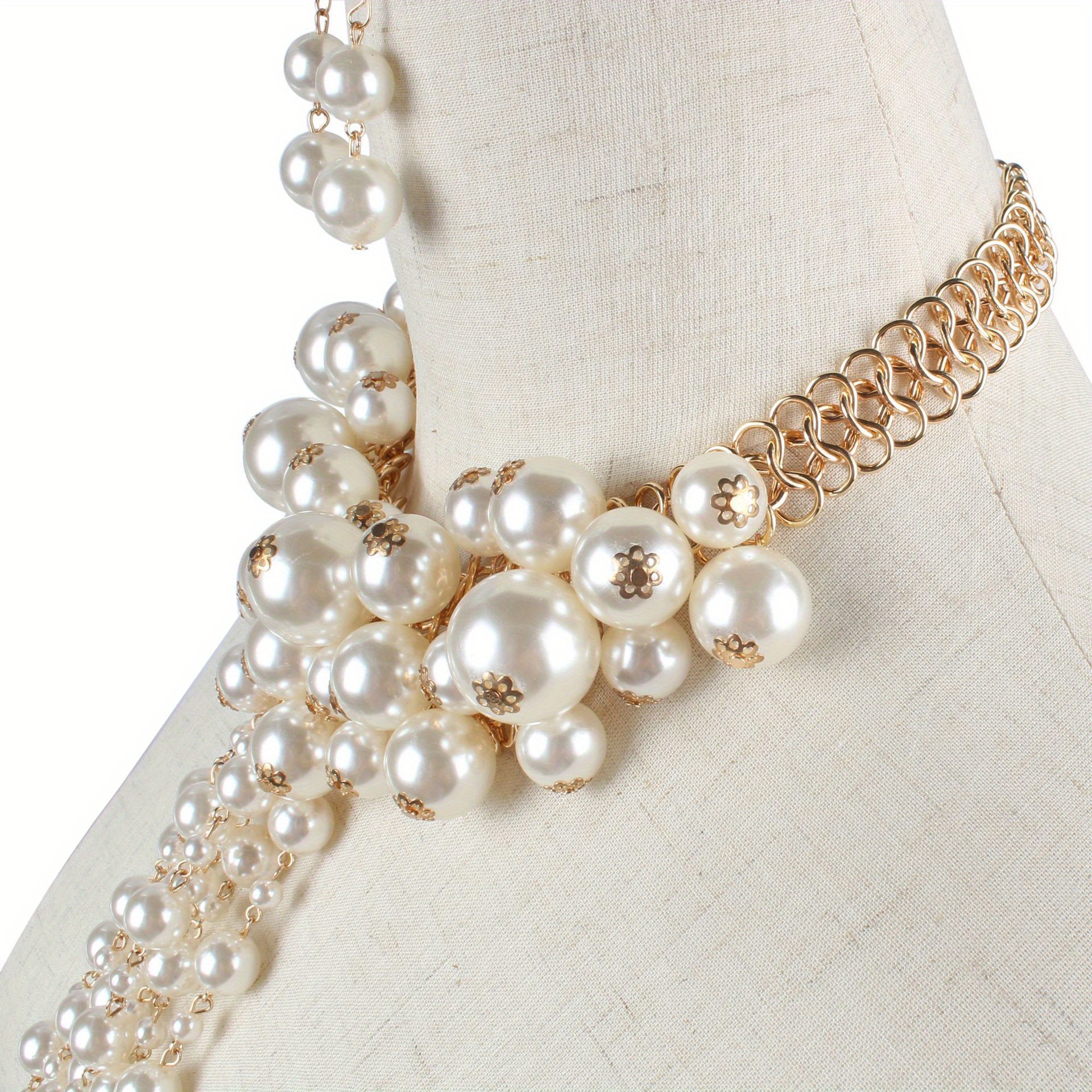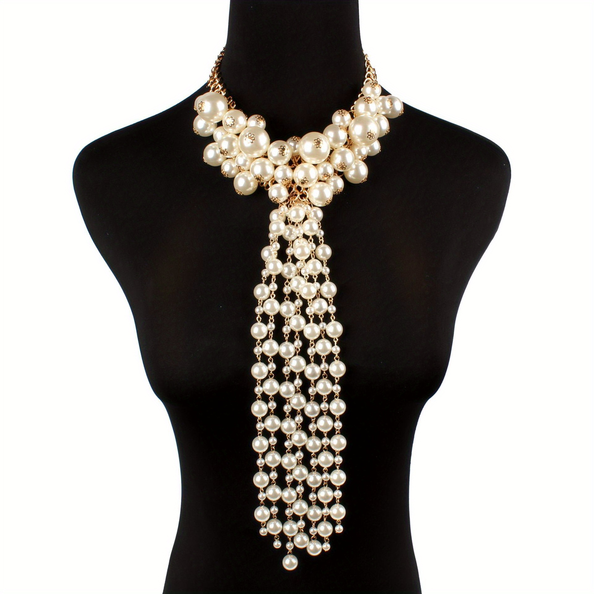 Pearl Reign isn’t just neck jewelry—it’s a royal decree. This dramatic collar floods the neckline with creamy pearls in clustered abundance, then spills into a waterfall of symmetrical strands that command attention from across the room. It’s not subtle. It’s not shy. It’s high fashion with a crown on top.
